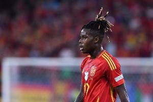 世预赛欧洲区小组赛E组第2轮,西班牙6-0大胜土耳其。上半场补时阶段,尼科-威廉姆斯突然倒地,多次用手按住左腿内收肌区域,最终被费兰-托雷斯换下。