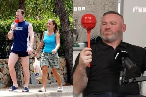 2003年,鲁尼还在埃弗顿效力,他和妻子科琳在葡萄牙度假时被拍到舔食着一根巨型棒棒糖,直到如今,这张照片还经常会在网络上传播。