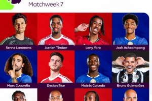 希勒评英超第7轮最佳阵:凯塞多、库库、赖斯、约罗、拉门斯在列