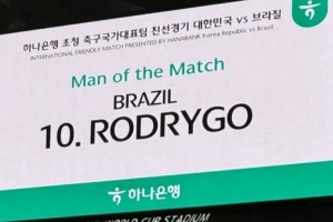 最终此役巴西5-0击败韩国,据比赛现场消息,罗德里戈当选此役最佳球员。