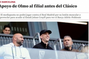 据悉,奥尔莫是在上一个国家队比赛日期间左腿比目鱼肌肌肉受伤,距离复出尚需时日。利用留在巴塞罗那的机会,奥尔莫在本周日前往约翰-克鲁伊夫球场,现场观看了巴萨B队的比赛。